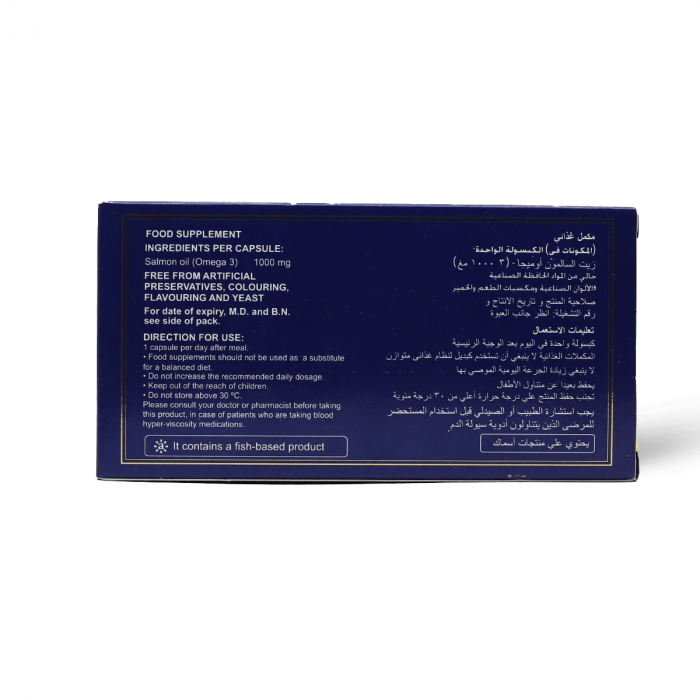 - مارنيز زيت السالمون، 1000 مجم يعزز صحة العين ، الدماغ أثناء الحمل وأوائل الحياة ، تقليل أعراض متلازمة التمثيل الغذائي.