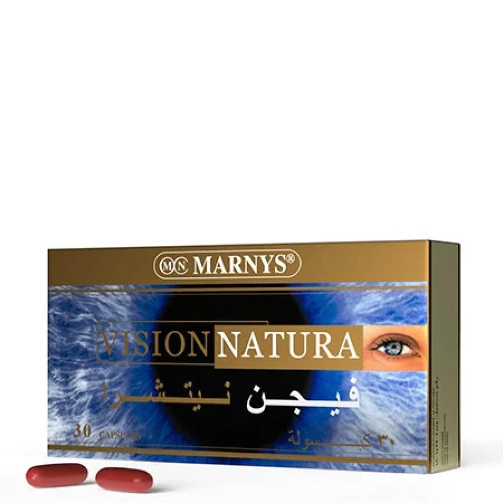 احمِ عينيك من الداخل كما تحميها من الخارج مع مارنيز® فيجن ناتورا، المكمل الغذائي الفريد الذي يحتوي على مزيج متميز من المكونات الطبيعية لدعم صحة عينيك. إذا كنت تستخدم نظارة شمسية لحماية عينيك من الأشعة الضارة، فلماذا لا تمنحها الحماية الداخلية أيضًا؟ يحتوي مارنيز® فيجن ناتورا على مستخلص التوت البري، لوتين، زياكسانثين، بيتا كاروتين، والعديد من الفيتامينات والمعادن التي تعمل بتآزر لحماية عينيك من الإجهاد التأكسدي ودعم الرؤية الطبيعية.
