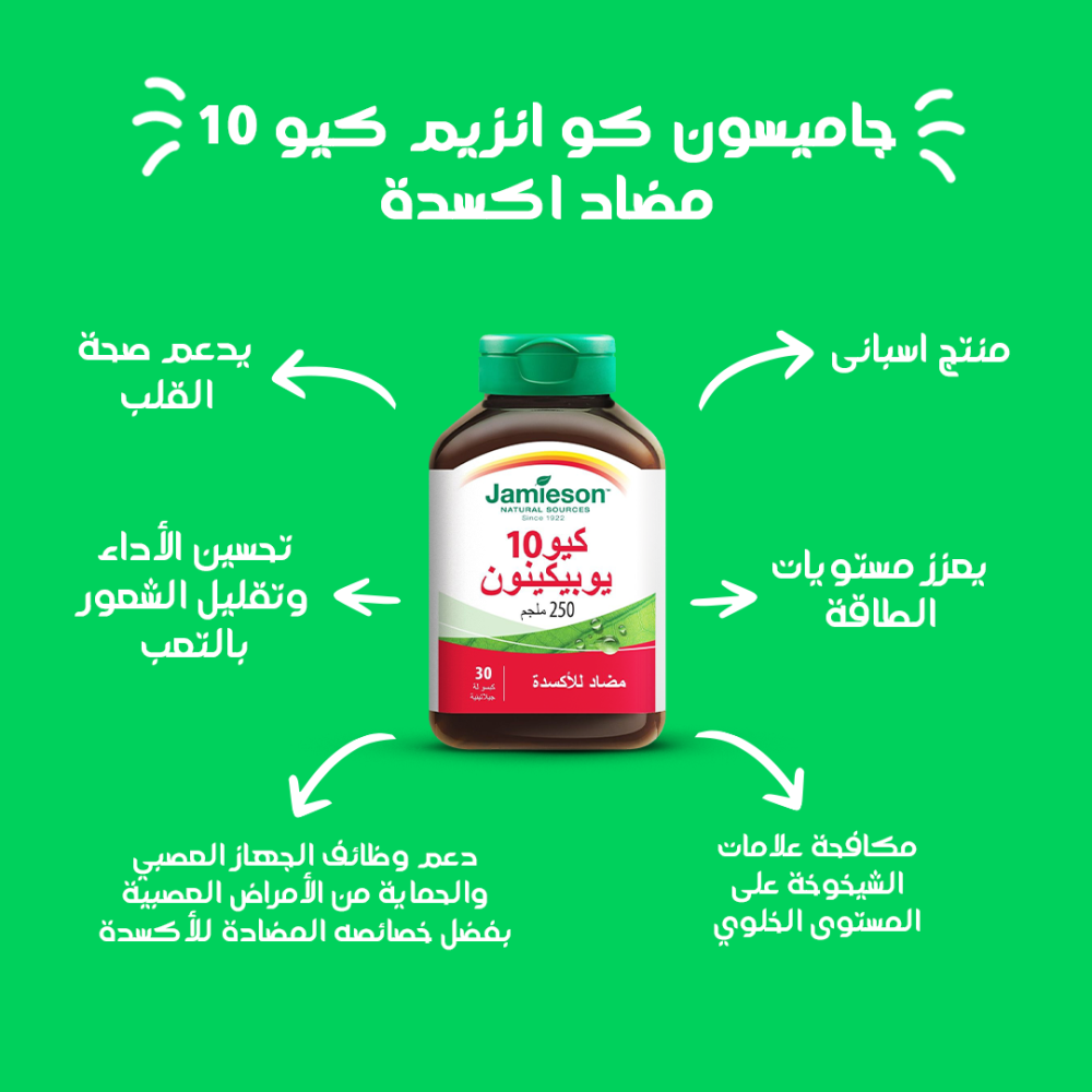 1- جاميسون كو انزيم كيو 10، من إسبانيا، يحسن الأداء البدني والذهني، يدعم الجسم في مقاومة التعب والإرهاق، ويعزز وظيفة القلب القلبية.