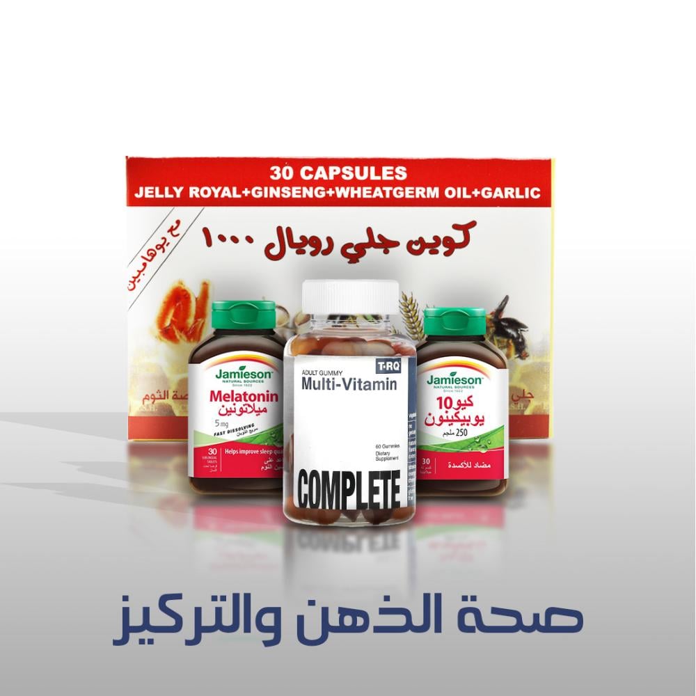 اكتشفوا "صحة الذهن والتركيز المضاعف"، المجموعة المصممة خصيصًا للأشخاص الذين يبذلون جهدًا ذهنيًا كبيرًا مثل طلاب الجامعات، رجال الأعمال، والمبرمجين. هذه المجموعة تقدم حزمة متكاملة من المكملات الغذائية لتغذية الأعصاب، تعزيز المناعة، وتوفير الحماية للعين، بالإضافة إلى تحسين قدرة الأوعية الدموية والقلب، مع الأخذ بعين الاعتبار أن عملهم يتطلب الجلوس لفترات طويلة.