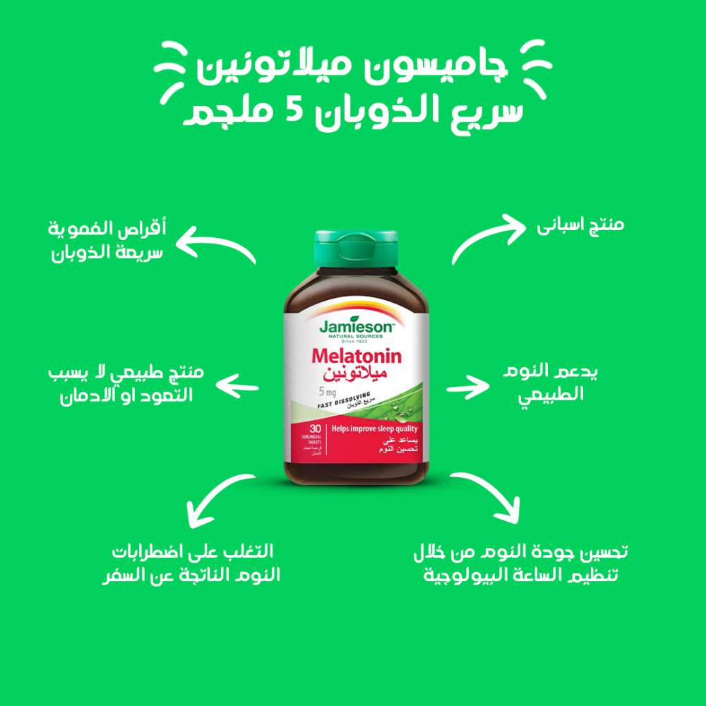 4- جاميسون ميلاتونين سريع الذوبان 5 ملجم : ميلاتونين سريع الذوبان 5 ملجم