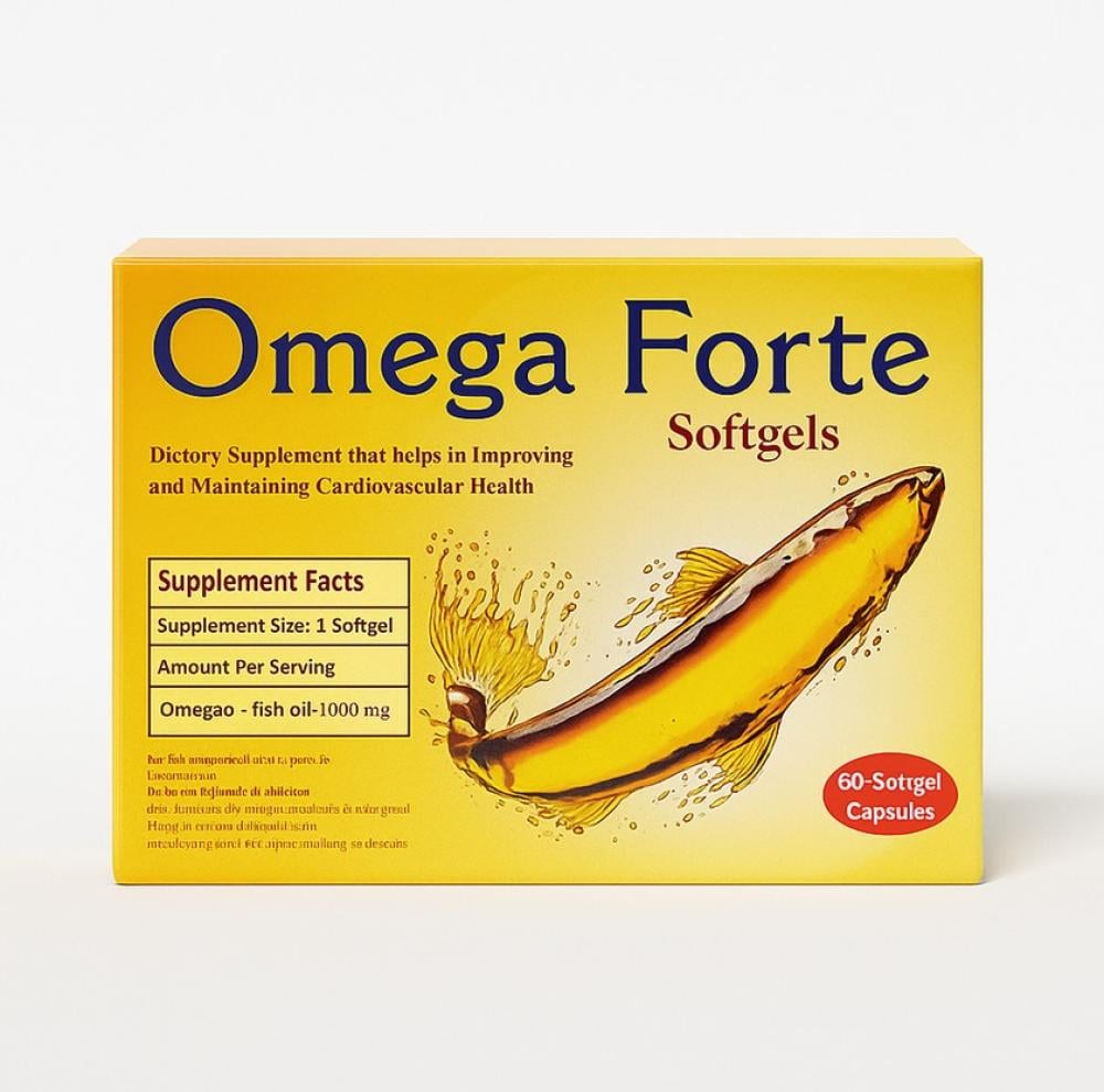 أوميغا فورت – 60 كبسولة تحتوي على 1000 ملغ زيت أوميغا بحري في كل كبسولة، تركيبة نقية عالية التركيز صُمّمت لتدعم صحة القلب والدماغ والرؤية وتمنح الجسم الأحماض الدهنية الأساسية من مصدر سهل الامتصاص وآمن للاستخدام اليومي.