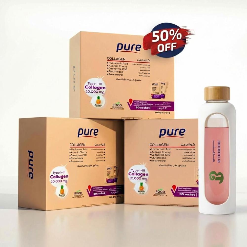 كورس 3 شهور بيور كولاجين 10.000 ملجم ببتايد I و II مع البيوتين 500 ملجم وحمض الهيالورونيك ومضادات الأكسدة